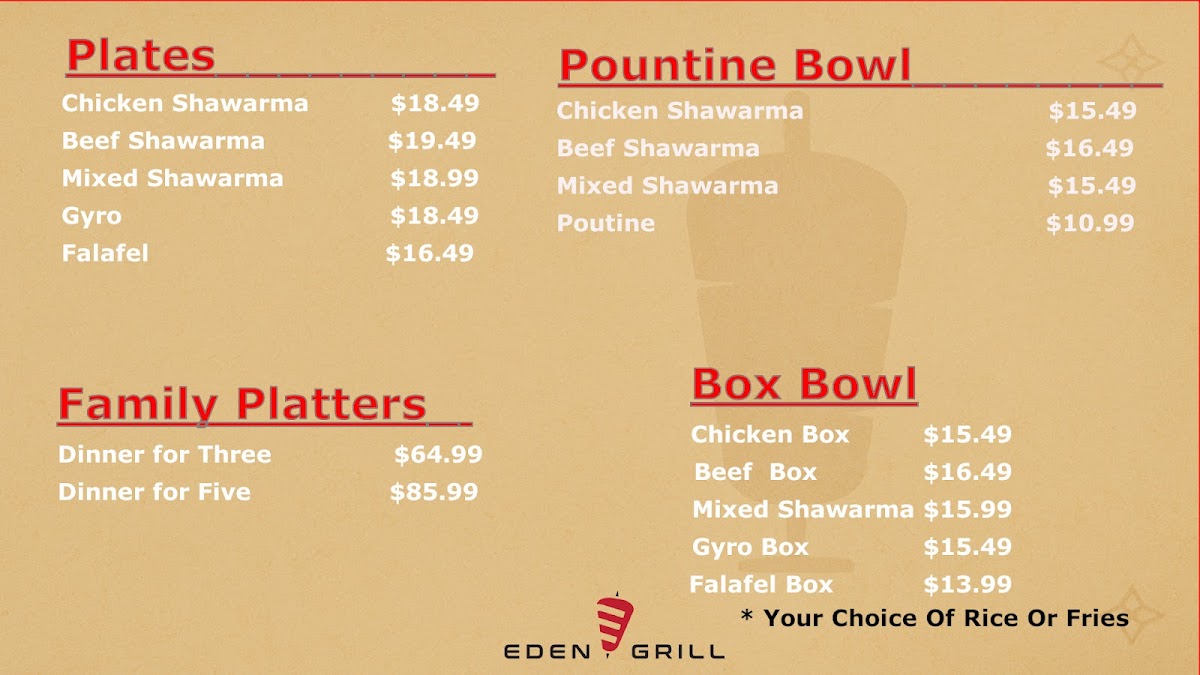 Welcome to Eden Grill, a culinary gem nestled at 13 Young St, Alliston, ON. This delightful eatery specializes in fresh and flavorful dishes that redefine "fast food." With an emphasis on quality, Eden Grill serves mouthwatering shawarma and juicy meats, which are available by the pound. Patrons rave about the generous portions and the zingy hot sauce that adds a kick!